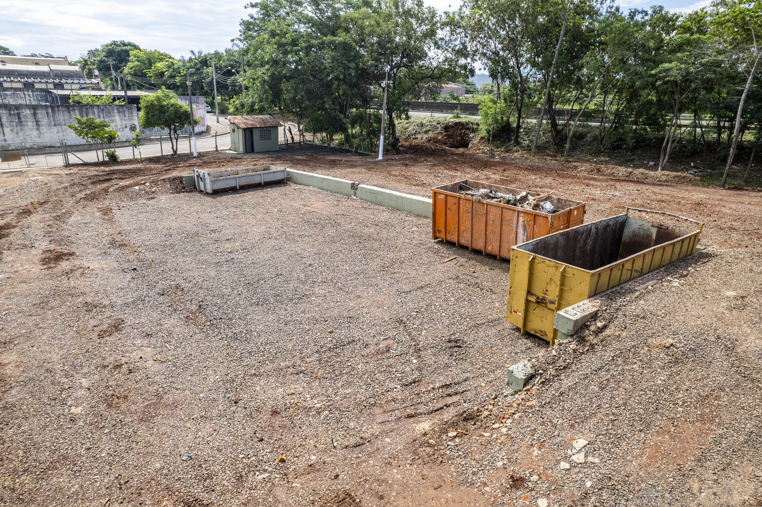 Durante o serviço, foram realizados procedimentos como retirada de resíduos acumulados, organização das caçambas e adequação da área para receber corretamente materiais permitidos para descarte.