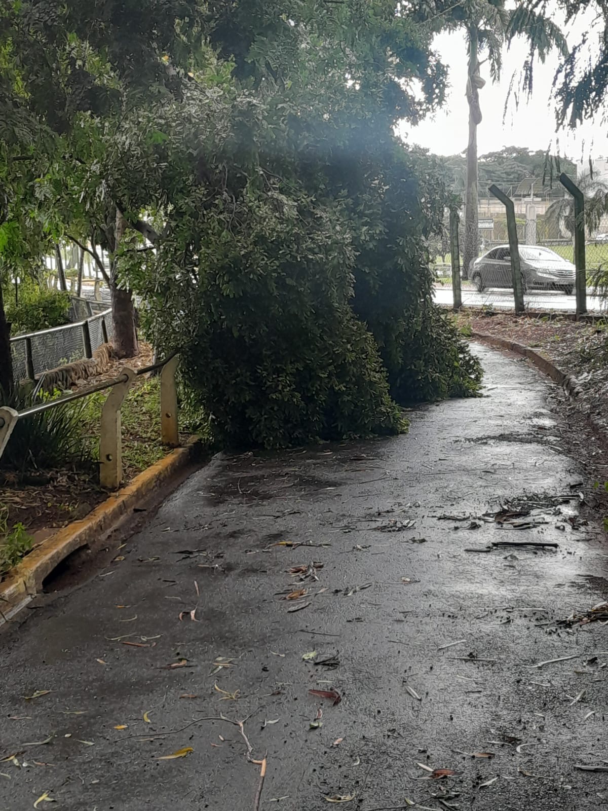 O temporal, acompanhado de ventos intensos, provocou a queda de galhos e grande volume de folhas em diversas áreas do parque. Diante da situação, a administração optou pelo fechamento temporário como medida de segurança para os visitantes.